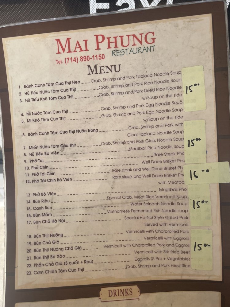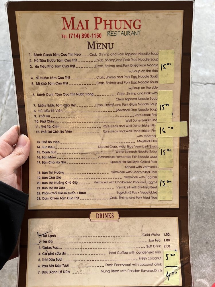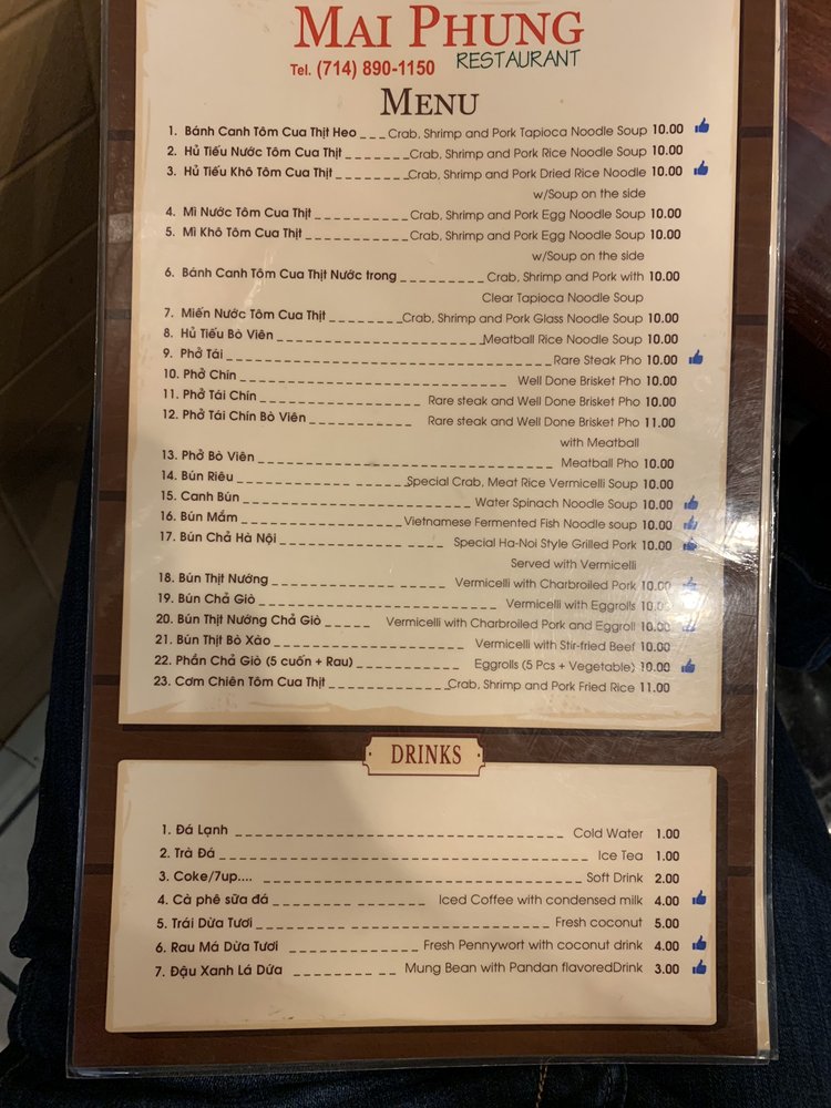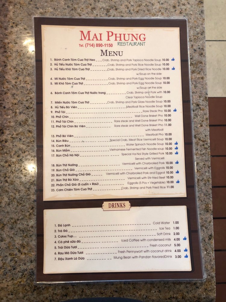 Mai Phung in Westminster, CA offers a diverse menu with a focus on Vietnamese cuisine. Venerated by patrons for their Seafood soup with tapioca noodles, acclaimed Banh Canh, and flavorful egg rolls, Mai Phung provides a cozy dining experience with limited vegetarian options. Despite small size and busy periods, the efficient service and delicious dishes leave a lasting impression. Customers praise the authentic flavors and generous portions, making it a go-to spot for Banh Canh enthusiasts. The rich broth, fresh seafood, and nostalgic home-cooked vibes create a unique dining experience worth the wait. Mai Phung's reputation for quality and consistency, along with their friendly service, continue to attract loyal customers seeking traditional Vietnamese fare.